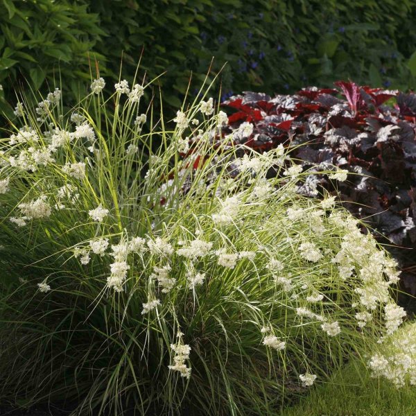 Este o iarba cu foliajul mereu verde, creste pe soluri bogate in humus, cu expunere la soare sau umbra. Formeaza tufe libere, cu frunze in forma de panglica, cu linii fine albe, de-a lungul marginilor. Florile albe, grupate in buchete, contrasteaza foarte frumos cu foliajul de un verde inchis. Creste pana la inaltimea de 45 cm, cu o intindere de 40 cm. ; infloreste in perioada mai-iunie.