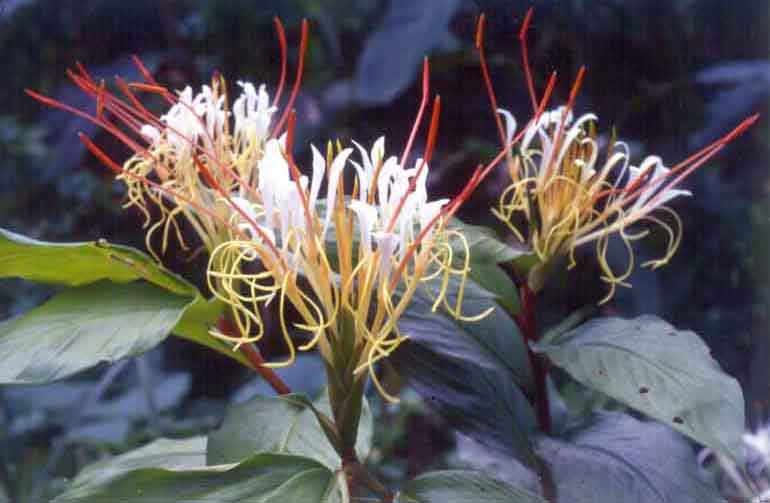 Este o specie originara din estul Himalayei si nord-estul Indiei.Este o planta in intregime foarte atractiva, cu frunze late, de un verde profund, nervurate la suprafata. Tulpinile cresc pana la 120 cm inaltime. Marginile bazei frunzelor, care inconjoara tulpina, sunt vizibil colorate in rosu. Pe timpul iernii intra in perioada de repaus. Rizomii raman in pamant; florile stridente apar in timpul verii.