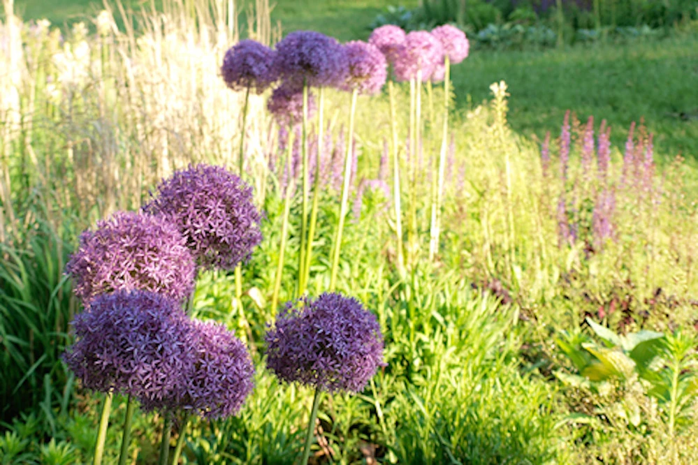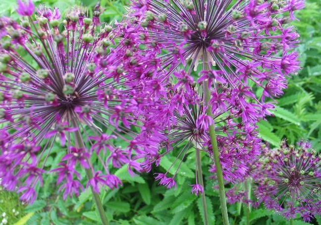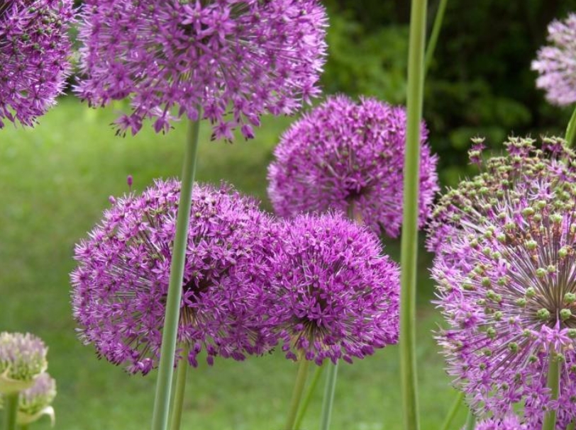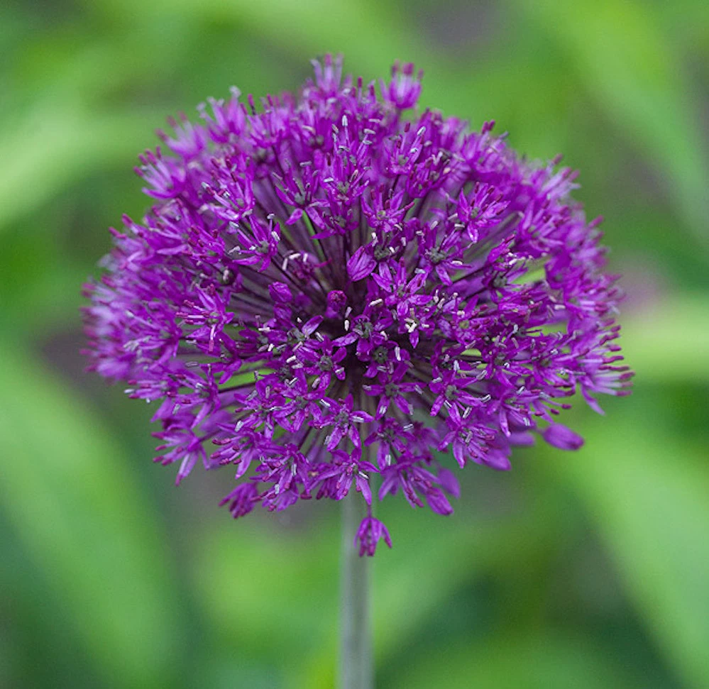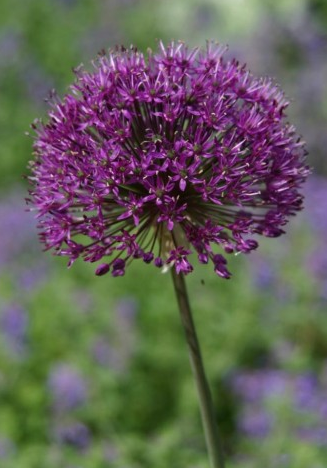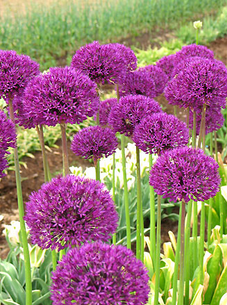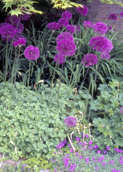 Un nou hibrid cu inflorescenta florala mare si culoare puternica. "Mingile" violet-purpurii, cu diametrul de 10-12 cm se nasc primavara tarziu, la capatul unor tulpini de 60-90 cm. Este cel mai timpuriu allium cu flori mari. Frunzele au nuante argintii. Nu este scump.