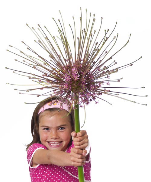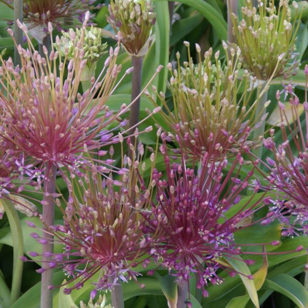 Este cu certitudine o apecie rara de allium, nativa din Palestina. Bizar foc de artificii, cu diametrul de 40 cm. Trebuie vazuta in realitate pentru a crede ca exista cu adevarat. Florile, in numar de aproximativ 200, roz-purpurii sunt grupate intr-o inflorescenta uriasa care poate atinge dimensiunile unei mingi de volei (40 cm in diametru). Floretele femele a acestei specii ce se autopolenizeaza, au lungimea de cca. 4 cm, in timp ce cele masculine ating 20 cm. Frunzele, care se asemana cu cele de zambila, apar primavara devreme. Florile isi fac aparitia mai tarziu si au o durata foarte mare de viata.
