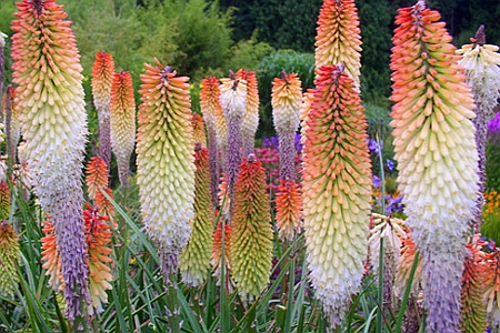 K. 'Strawberries and Cream' are o inflorescenta de spic terminala cu flori tubulare, alb-crem ce se deschid din bobocii rosii-rizalii, vara tarziu.