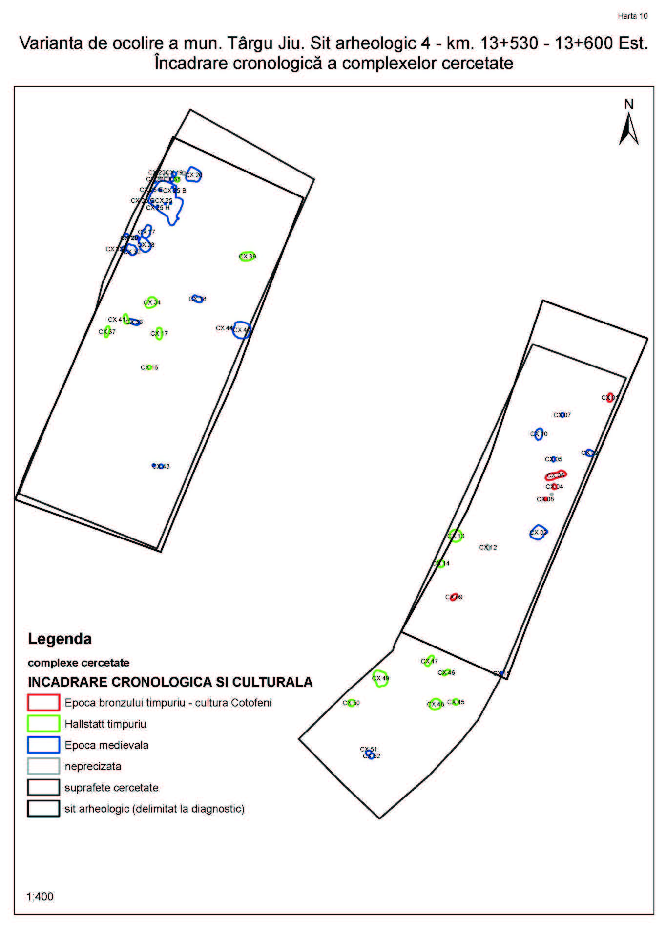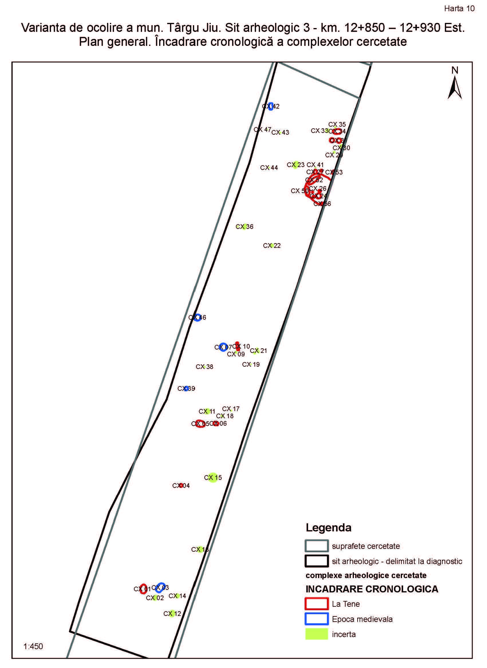 | Reper | Situl, localizat la sud de Pârâul Dobra, aproape de confluenţa sa cu Valea Roşianca, pe marginea unei terase înalte şi relativ plane, reprezintă un punct inedit pe harta descoperirilor arheologice din zona mun. Târgu Jiu. | |