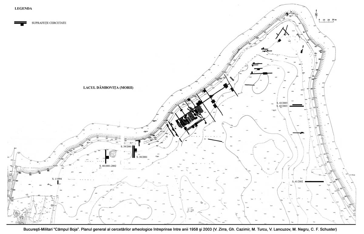 | Reper | Situl arheologic se află în vestul oraşului, cartierul Militari, pe malul sudic al Lacului Dâmboviţa, între aleea Lacul Morii la N şi str. Dâmboviţa la S, străpuns de canalul Argeş spre vest. | |