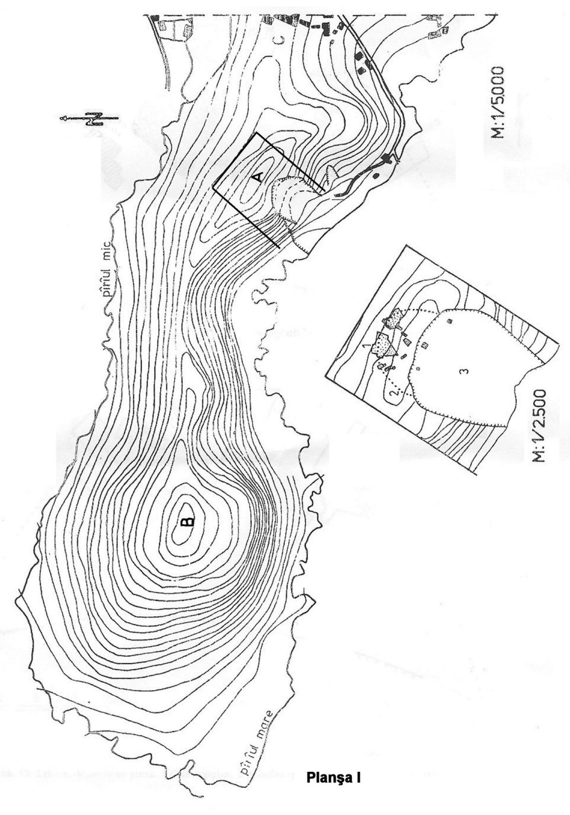| Descriere | Pe laturile de est, vest şi nord se văd urmele unui val de piatră legat cu pământ. | |