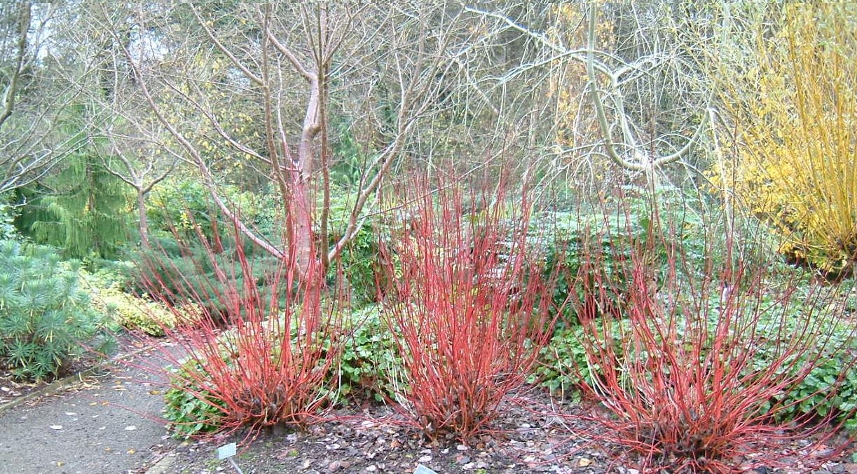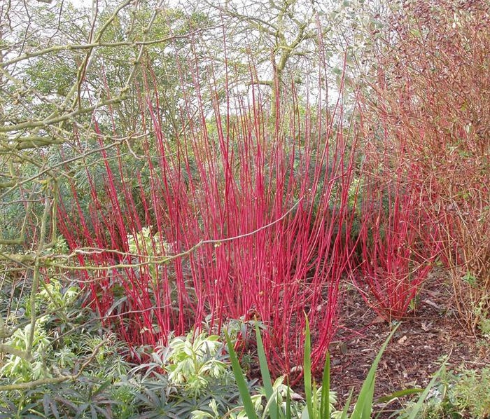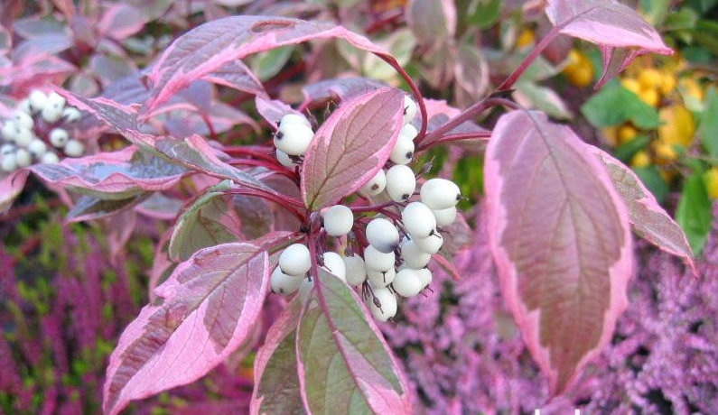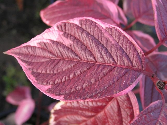 Frunzele verzi-argintii, bordurate cu alb, devinn rosii spre toamna. Creste 2m si se acopera de flori albe, in luna mai. Foarte rezistent la ger. Tulpini rosiatice iarna. Culoarea scoartei si a foliajului o face de neinlocuit.