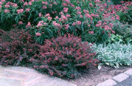 Frunzisul: foios, alternant, ovat, 1-2 cm lungime, purpuriu inchis, infrunzeste devreme. Culorile toamnei stacojiu luminos.