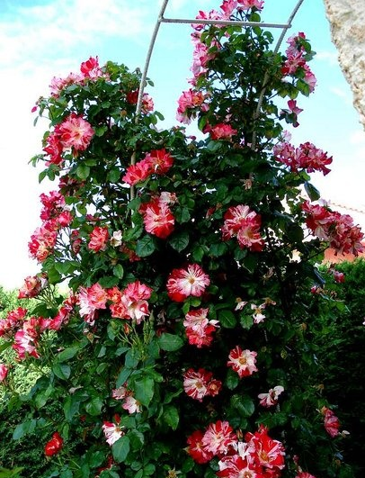 Primul trandafir catarator care a cistigat AARS in 23 ani isi merita pe deplin premiul. Florile vargate, rosu-catifelat cu alb, explodeaza in culori vibrante, precum focul de artificii. Tulpinile lungi de pana la 4,5 m sunt imbracate in frunze verde-intunecat, lucioase.