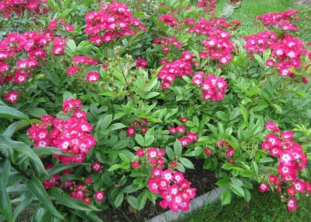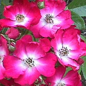 Flori simple, in nuante de rosu cu centrul alb, cu parfum de intensitate medie.