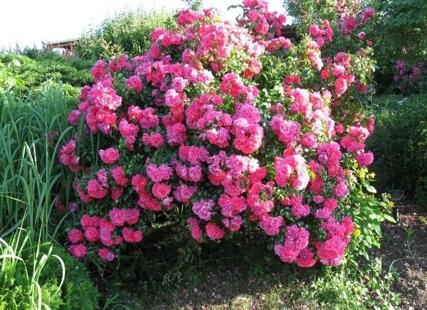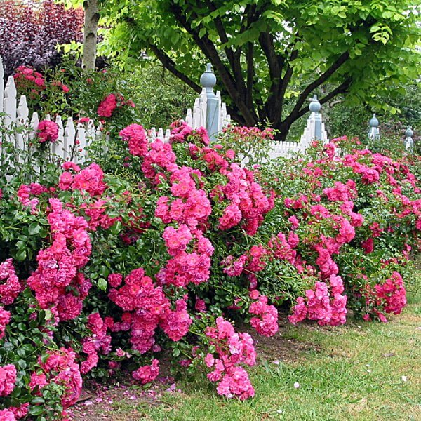 Tufe semi-taratoare, frunze mici, verzi-inchis, lucioase. Flori semi-involte mici, ciorchini bogati, cu petale roz-intens, slab parfumate, ce se decoloreaza inainte de ofilire. Inflorire abundenta, rezistenta buna la boli si ger. Soi valoros pentru acoperirea de suprafete mari. Se protejeaza in prima iarna dupa plantare.