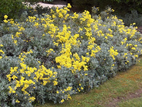 Arbust mereu verde, frunze pufoase, verde-gri, ovate, in vara si inceput de toamna cu flori galbene. Ii sunt necesari 2 ani ca sa formeze o cuvertura densa.