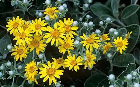 Brachyglottis Sunshine este foarte atragatoare datorita tulpinilor si frunzelor acoperite cu un puf alb care confera plantei un aspect gri-argintiu catifelat ce străluceste in soare.
