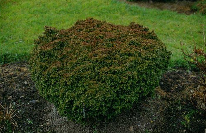 Aspect :arbust pitic , rotund, ramuri rigide, in tinerete putin asimetric, foarte dens stufos. Crestere inceata.