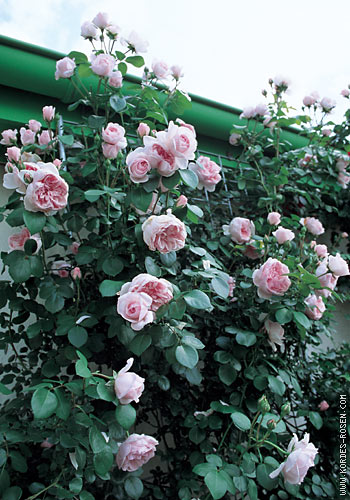 Are farmecul trandafirilor clasici, un frunzis sanatos si flori de un roz delicat.