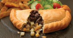 Cornish Pasty” (IGP), produs in Marea Britanie, este un pateu savuros in forma literei „D” care este umplut cu carne de vita, legume si condimente.
